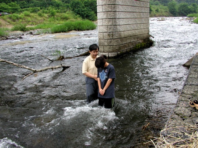 2003年6月15日(日)礼拝後犀川でバプテスマ式が行われ、私たちの教会に一人の姉妹が加えられました。